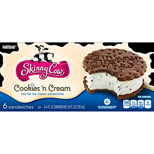 Skinny cow vanilla ice cream cookies (1 serving) contains 25g total carbs, 25g net carbs, 1.6g fat, 2.9g protein, and 129 calories. This is a taste test/review of the skinny cow cookies 'n cream ice cream sandwiches. Is available in 7 stores. They are 150 calories each and have a value of 4 . Vanilla & chocolate low fat ice cream sandwiches, box,. Order online nestle skinny cow cookies 'n cream low fat ice cream sandwiches on www.donelans.com. Cookies 'n cream ice cream sandwiches brand skinny cow, format 6 x 4 fl oz, price $5.49. Disney mickey mouse cookies 'n cream light ice cream sandwiches. No need to miss out on dessert tonight! Skim milk, corn syrup, sugar, cream, buttermilk, tapioca starch, guar gum, pectin, vitamin a palmitate. 2l $0.30 per 100ml unit price. Buy skinny cow the dynamic duo: Skinny cow ice creams are low calorie, low fat and delicious!